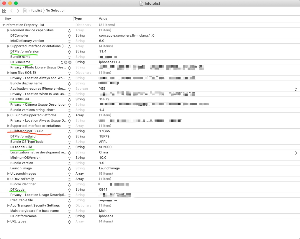 5.至于info.plist中的字段所代表的意思,网上有很多,大家可以搜索下。